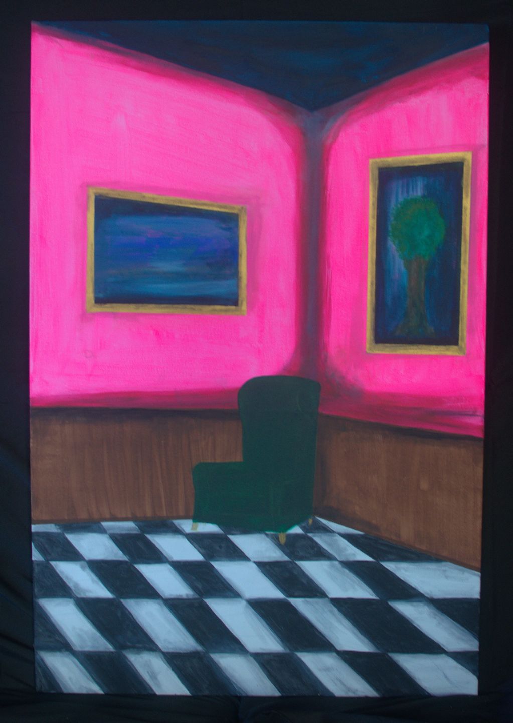 I am an Outsider artist. I like to choose my own colors to experiment and to play with. I often work in darker colours, as I find a sense of comfort in the darkness of things around me, as this often reflects my moods. There is a sense of comfort and cosiness to a dark lit space that hides what you may have to deal with in